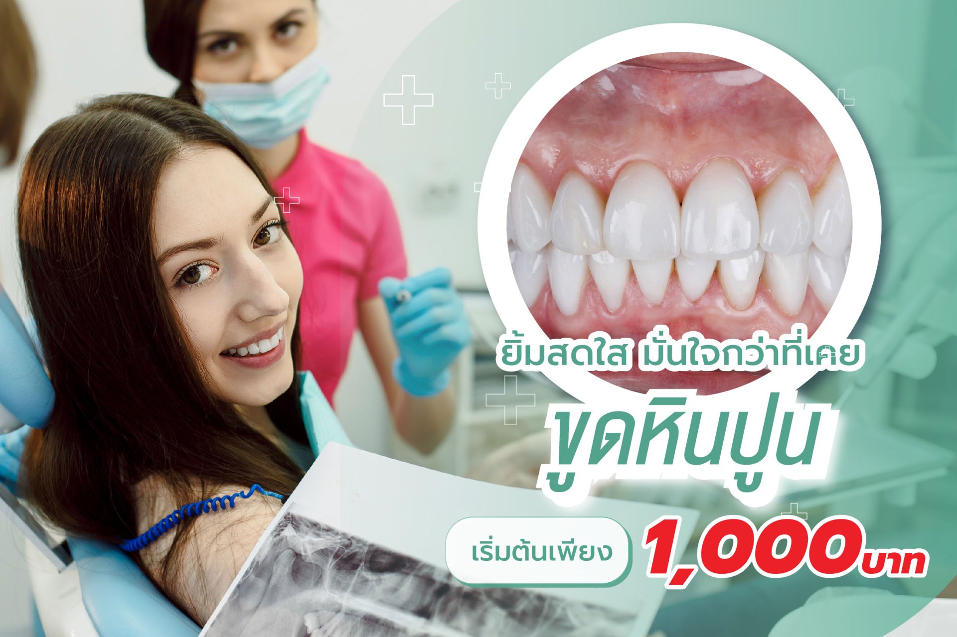 ค่าบริการขูดหินปูนและขัดฟัน ราคา 1,000 - 1,500 บาท